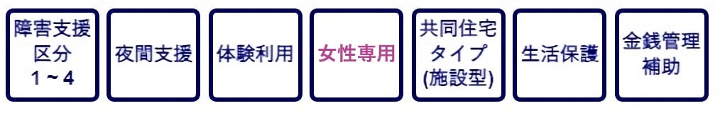 | 対象者 | 女性のみ 精神障がい者 知的障がい者 |